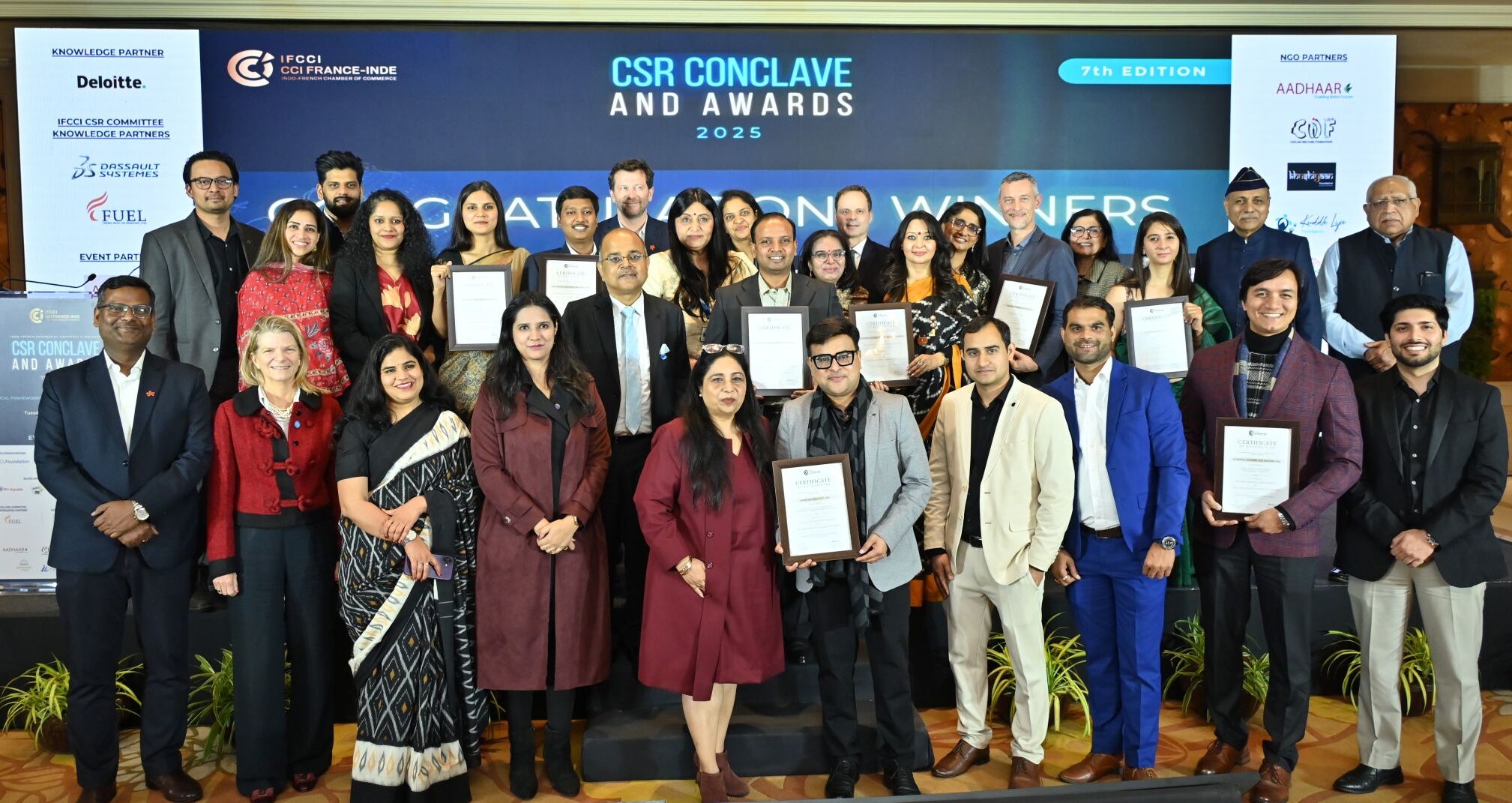 The Indo-French Chamber of Commerce and Industry, under the aegis of its CSR Committee, successfully organized the 7th edition of the IFCCI CSR Conclave & Awards 2025 on 2nd December at ITC Maurya, New Delhi. Bringing together more than 120 CEOs, policymakers, sustainability champions, CSR foundations, and NGOs, the event served as a vibrant platform for sharing best practices and celebrating inspiring CSR achievements across the Indo-French ecosystem.