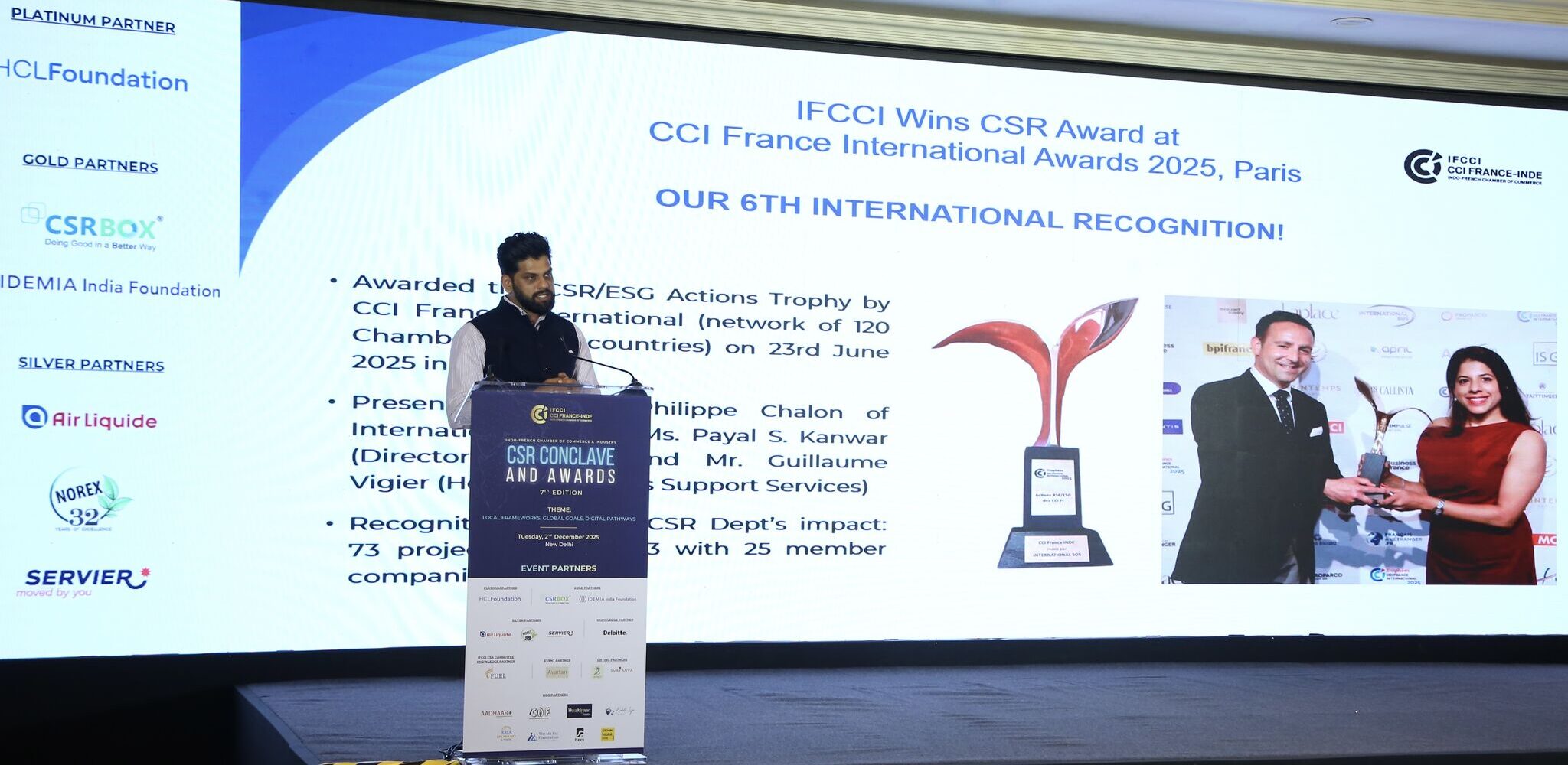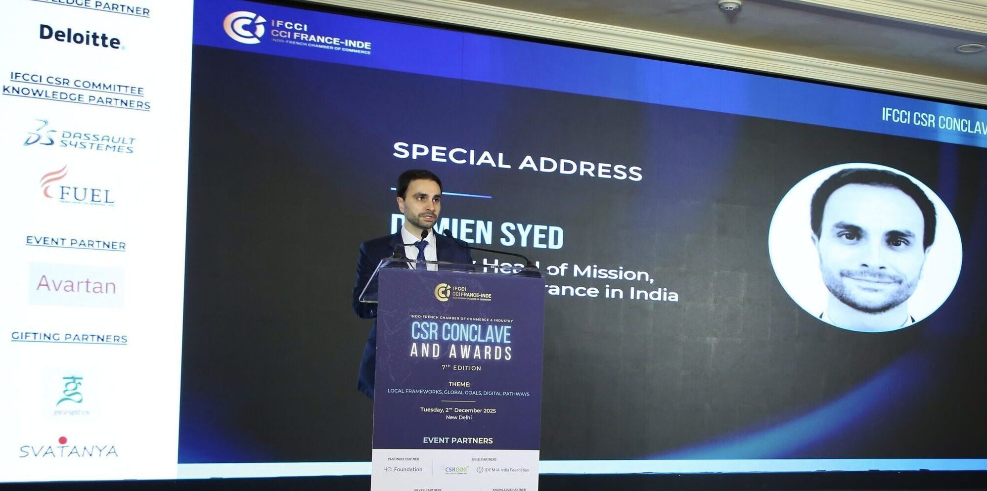 A special address was delivered by Mr. Damien Syed, Deputy Head of Mission at the Embassy of France in India, who highlighted the deepening Indo-French partnership in CSR and the exciting prospects ahead as we move toward the Indo-French Year of Innovation 2026.