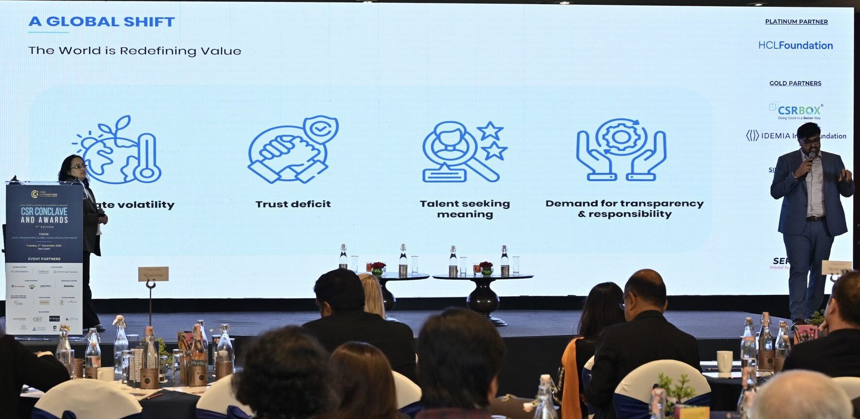 The event also included a thematic presentation titled ‘The Way Forward, Together: India’s Leadership in the Purpose Economy’, delivered by Ms. Manasi Diwan, Vice President – Impact Practice, and Mr. Adarsh Trivedi, Assistant Vice President, Government & Technology at CSRBOX.
